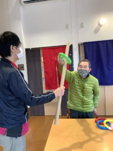 そんな中いっぽでは、皆で熱くなるような「立ち座り運動」を行っております(^^)
