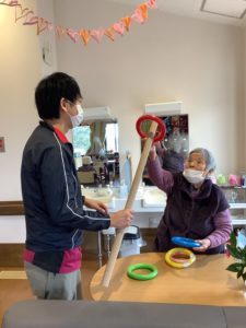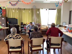 職員の声のみならず、ご利用者様の声もよく聞こえてきたり、立ち上がりの最中に手で太もも付近を叩きながらリズムを取る方も(^^)
