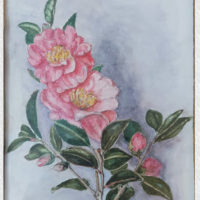 作者の部屋の前に咲いた、庭の山茶花を描かれました。