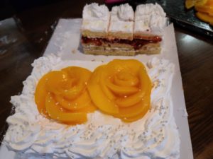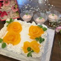 飾りつけにある薔薇は、缶詰の桃を使用してます。