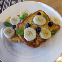 フレンチトーストには、バナナとブルーベリーを・・