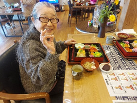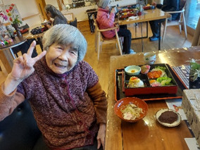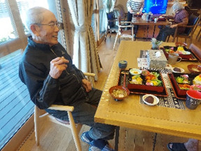 雛膳を前に喜んでいただきました。