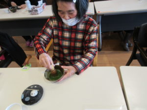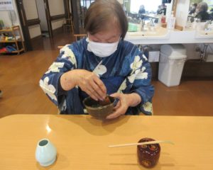当事業所のご利用者様が先生となり、お茶の点て方の説明と実演をして頂きました。