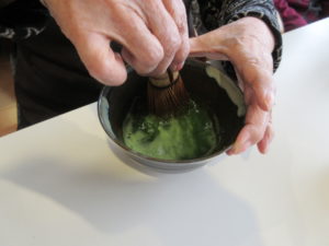 茶せんで円を描くようになじませた後に、縦に前後させて泡立てるという工程です。