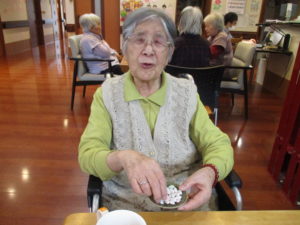 小さな色とりどりのあられに「可愛かね~」と喜ばれておられました😊