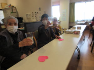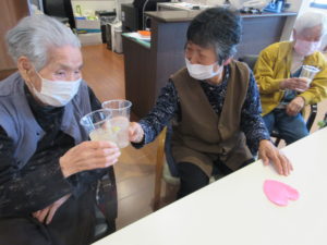 ハートのコースターは裁縫が得意なご利用者様に作っていただきました♡