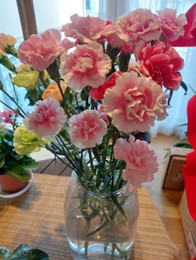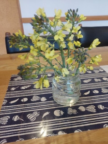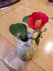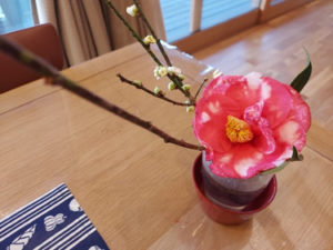 こちらの食卓花は、斑入りのツバキと桃の花です。