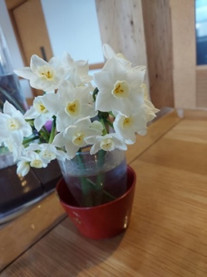 玄関のクリスマスローズから始まりフロアは春でいっぱいです。