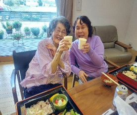 入居の女性陣がエプロンがけで、手伝ってくれます😂