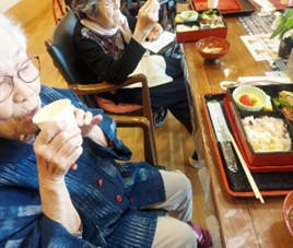 入居の女性陣がエプロンがけで、手伝ってくれます😂