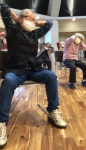 リハビリ職員によって体操の内容が違いますので利用者様も「今日の先生は誰ね?」と聞かれます。中には体操メニューがハードな日もありますので始まる前に皆様は心の準備体操をされております…🤫私達職員でも息が上がる日もあるほどの内容ですので、Maficの皆様の体力には圧倒されます🙌💦