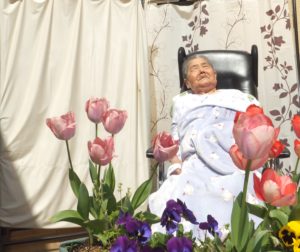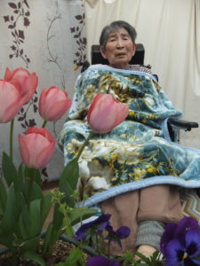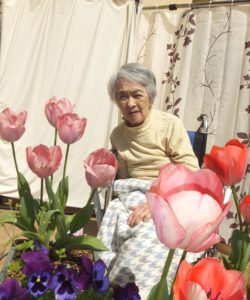 中庭にきれいなチューリップが咲いたので写真を撮りました。