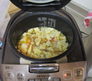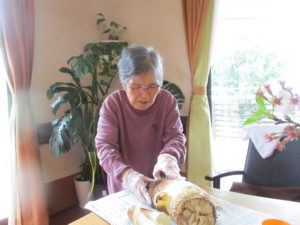 慣れた手つきで皮をむきのお手伝いをされ流石です。