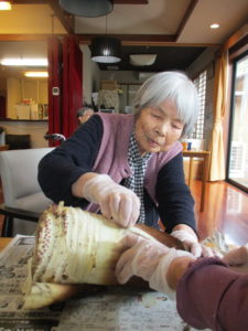 「美味しいですよ」「初物ですね」「昨日剥いたタケノコね?」「味が染みてて美味しい~」とご利用者様にも好評でした🤭
