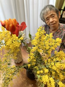 ミモザの花の可愛いらしい姿に、思わず「きれいね、可愛い」と喜んで頂きました。