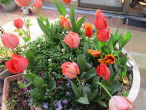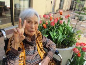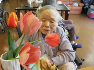 まつ・らんユニットの中庭にはかわいいチューチップが満開です。
