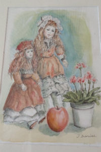 ロココ調の華麗なドレスを身に着けたフランス人形です。