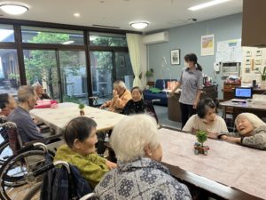誕生日会では茶話会、レクリエーションも一緒に行いました。