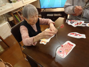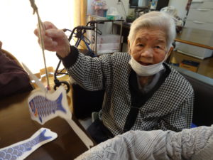冷やして固まるのを待つ間レクリエーションで、こいのぼり釣りゲームをしました。