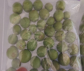 梅を洗って、へたを取った後、今年は冷凍する事にしました。