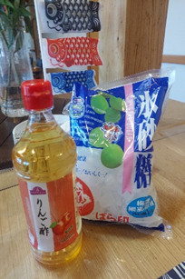材料は氷砂糖とりんご酢を入れて香りづけします。