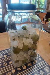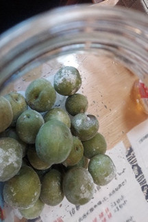 消毒したガラスの瓶に冷凍した梅を入れて・・