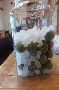 消毒したガラスの瓶に冷凍した梅を入れて・・