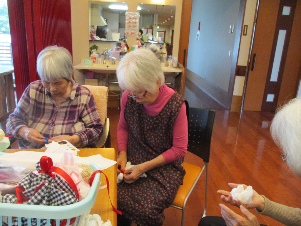 そして6月に向けて、梅雨の時期に酷い雨にならないように皆さんで、てるてる坊主を作りました。
