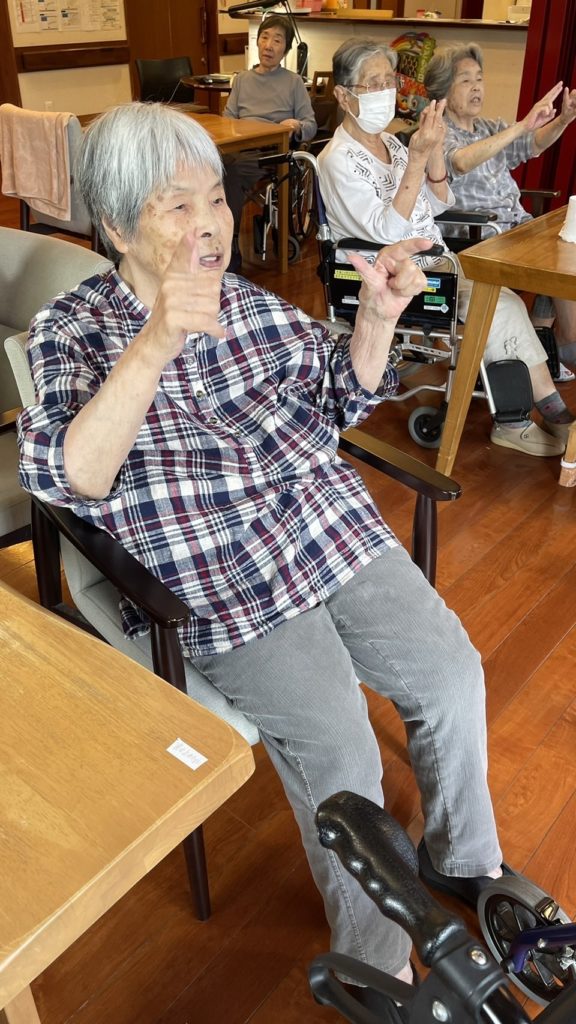 時には、歌を唄いながら体操も行います。