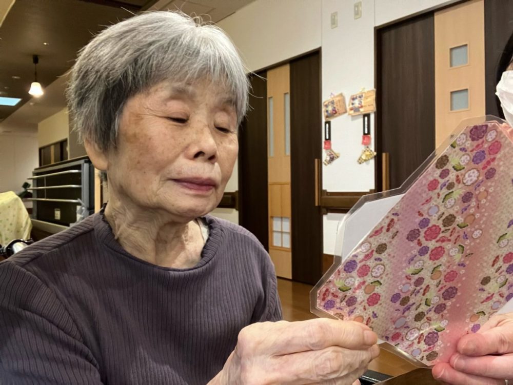 今日は生憎の雨ですが、うめきくユニットの女性利用者へご家族に代わって