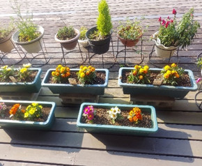 ひいらぎハウスのデッキは、季節の花でいっぱいです。