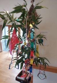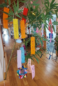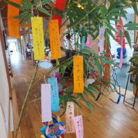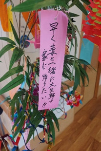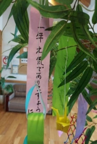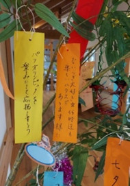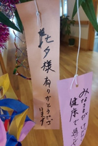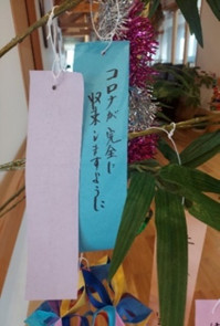 短冊を持ち帰り、書いてそっと笹に綴られます。