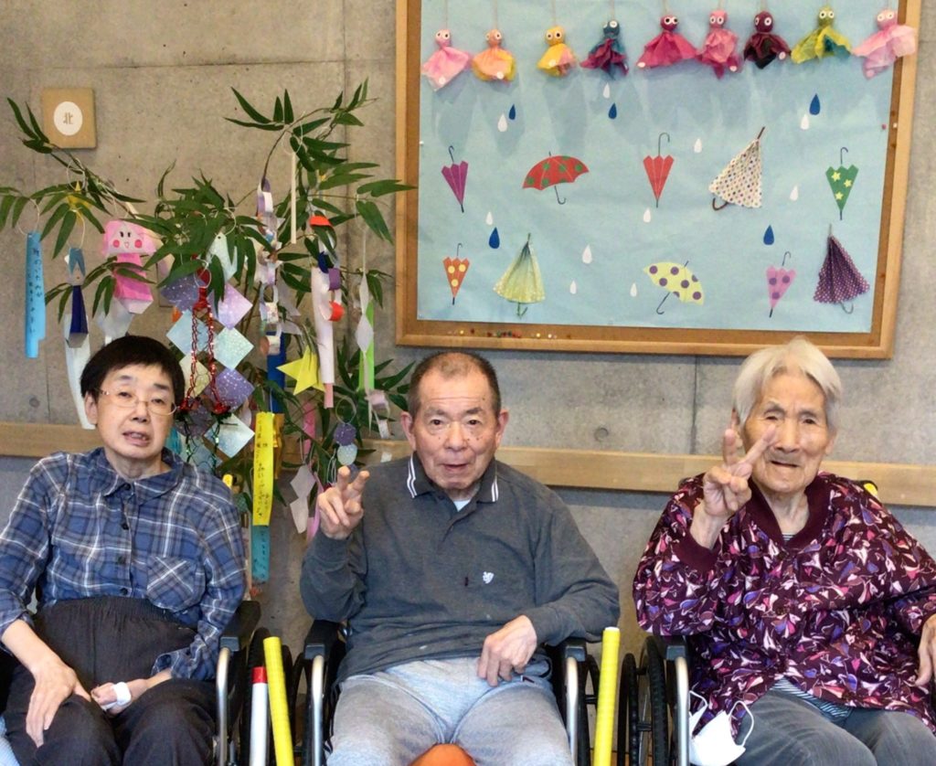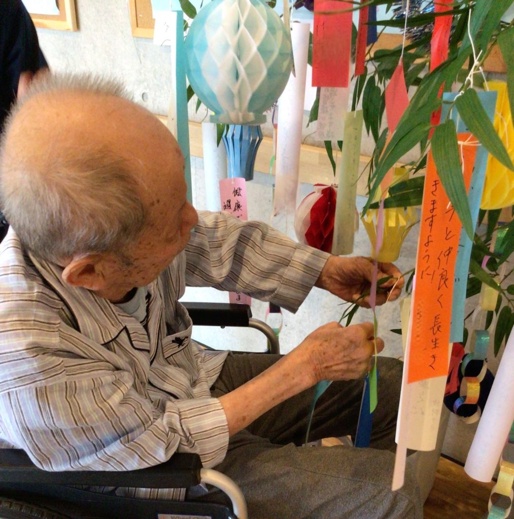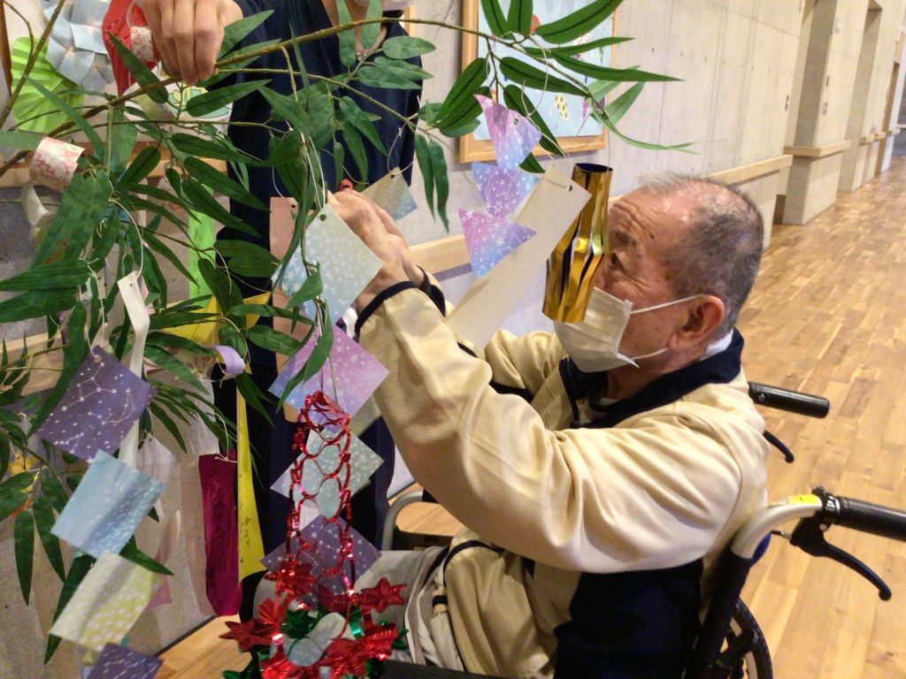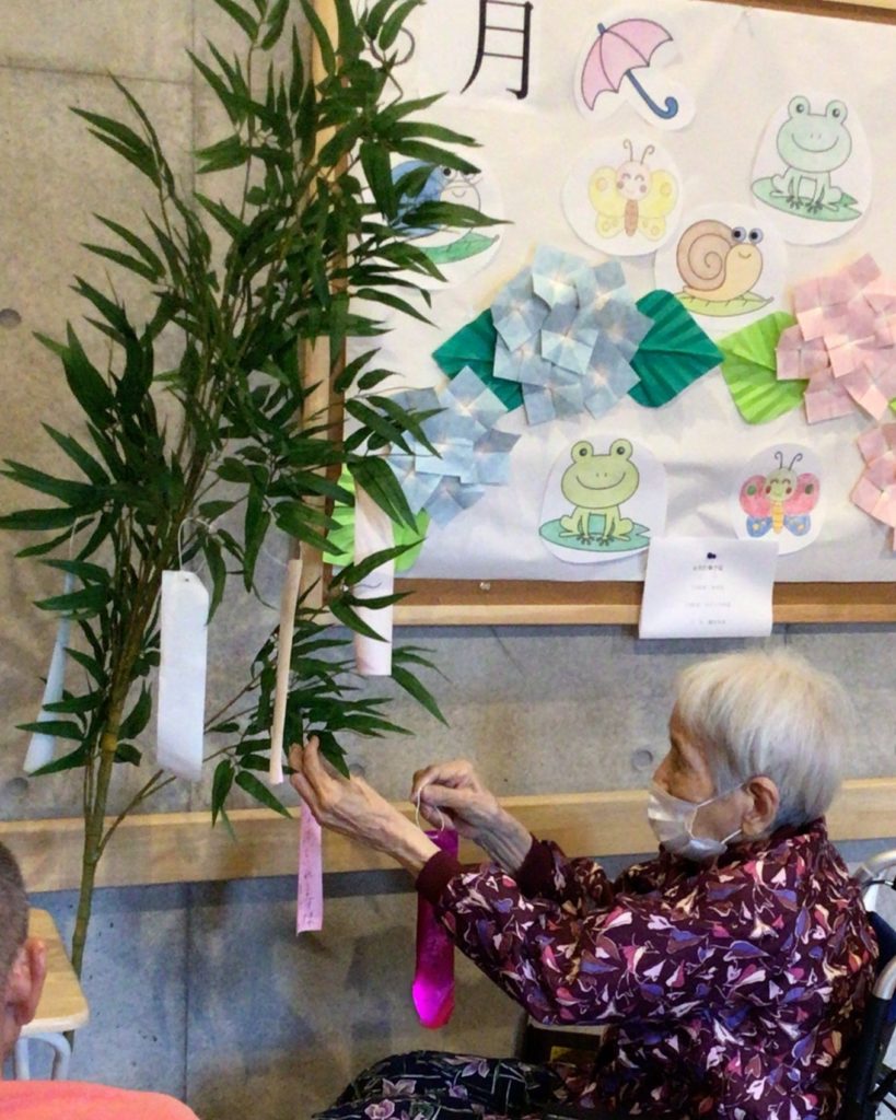 手の届く所にご自身でさげられたりして立派な七夕飾りが完成しました🤗
