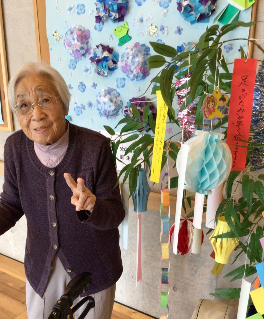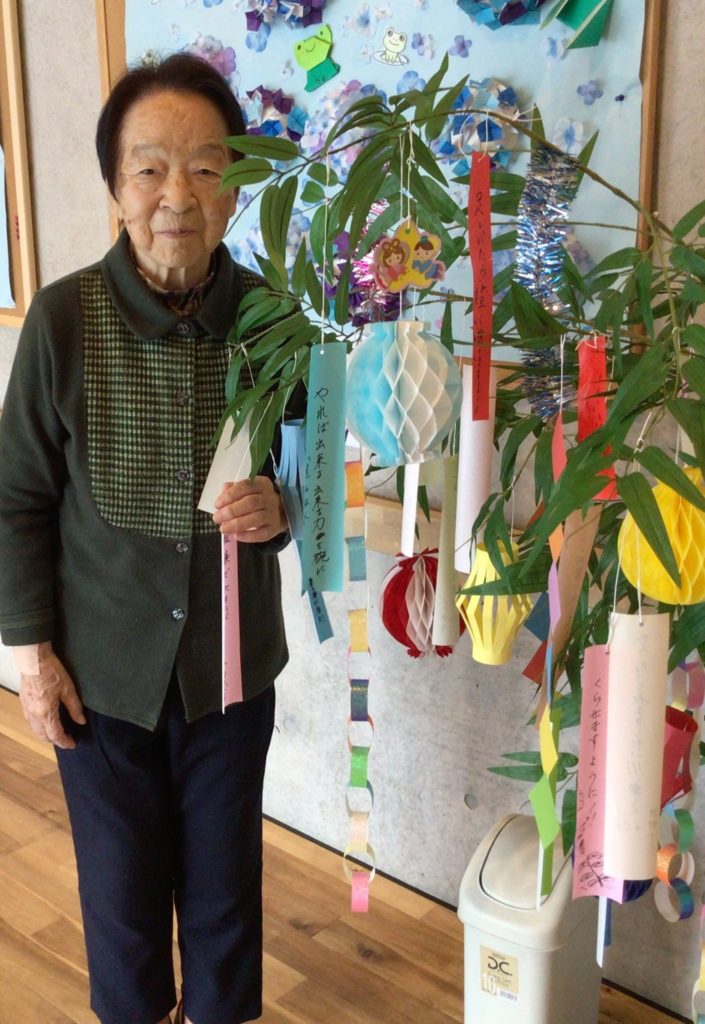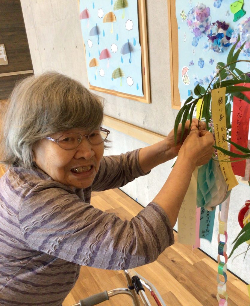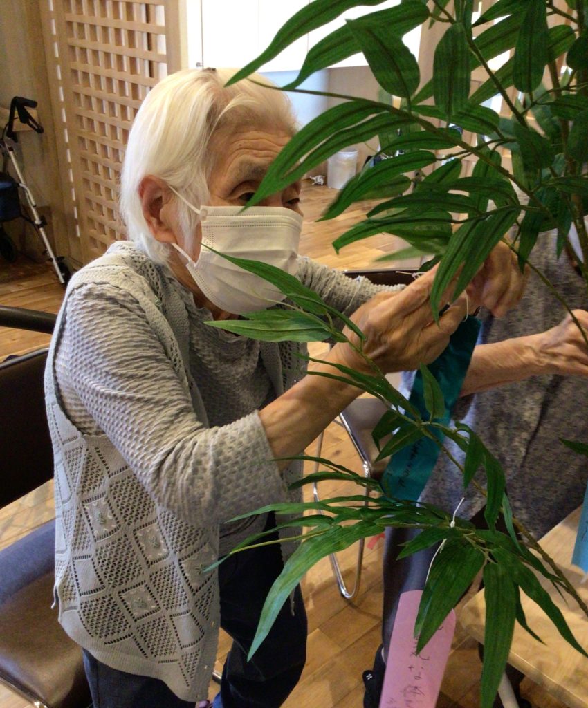 手の届く所にご自身でさげられたりして立派な七夕飾りが完成しました🤗