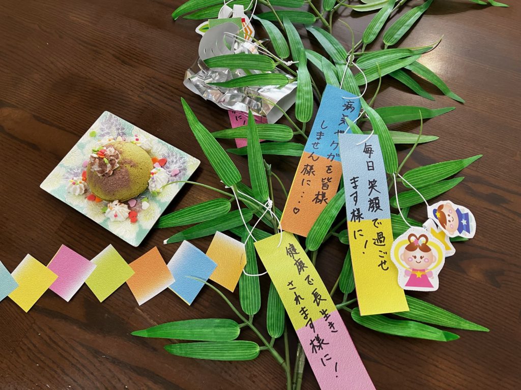 もみじ・ぼたんの皆様はこの暑い夏をみんなで乗り切れるよう七夕には