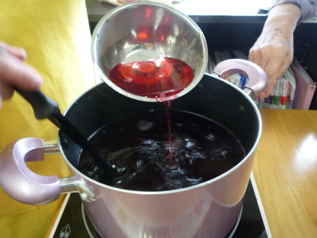 今日は、この赤紫蘇をたっぷり使ったさわやかな味わいの「しそジュース」作りを行ないましたのでご紹介しますね。