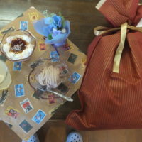 プレゼントをお渡ししてお祝いした後、プリンをデコレーションして食べて頂きました。