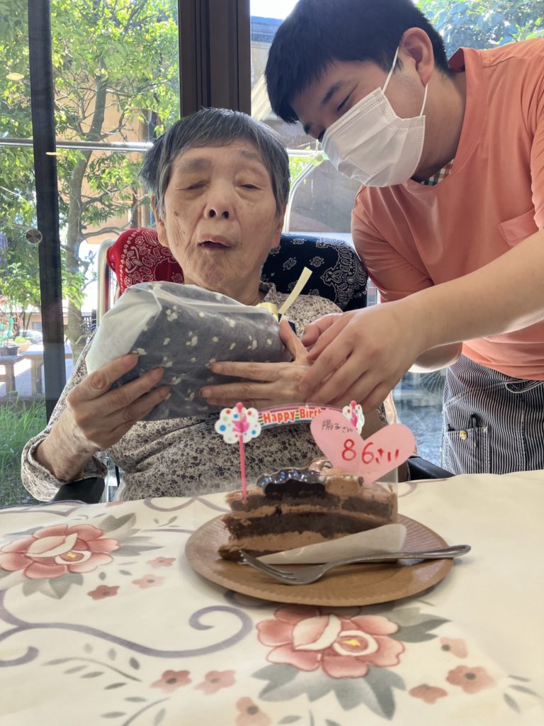 皆さんでお祝いをしました。レクリエーションの一環としまして