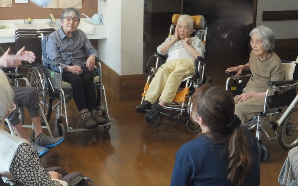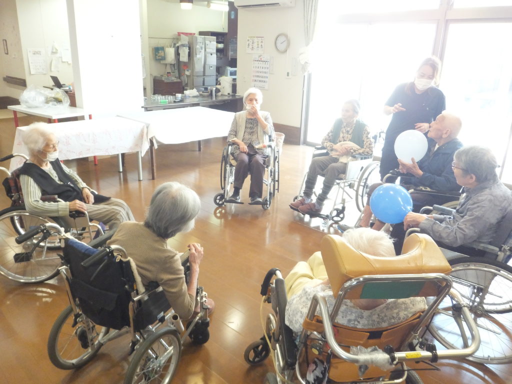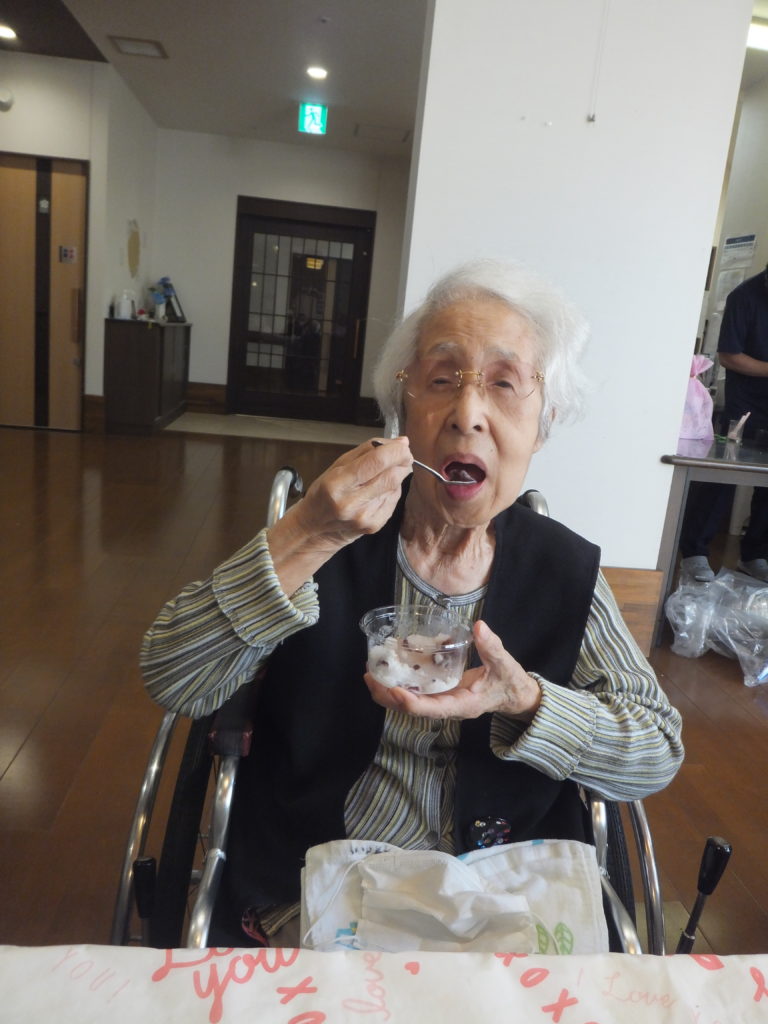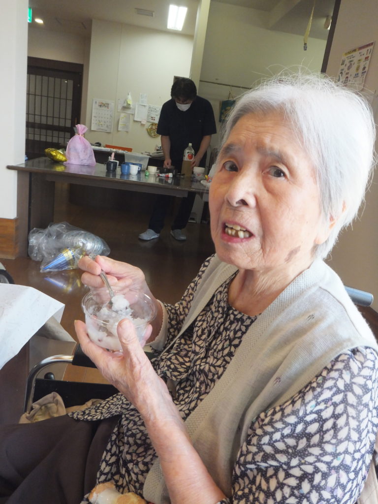 さくら・ふじユニットにてかき氷と風船バレーをしました。