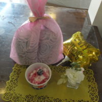 かき氷を食べてから、風船バレーをして楽しみました。
