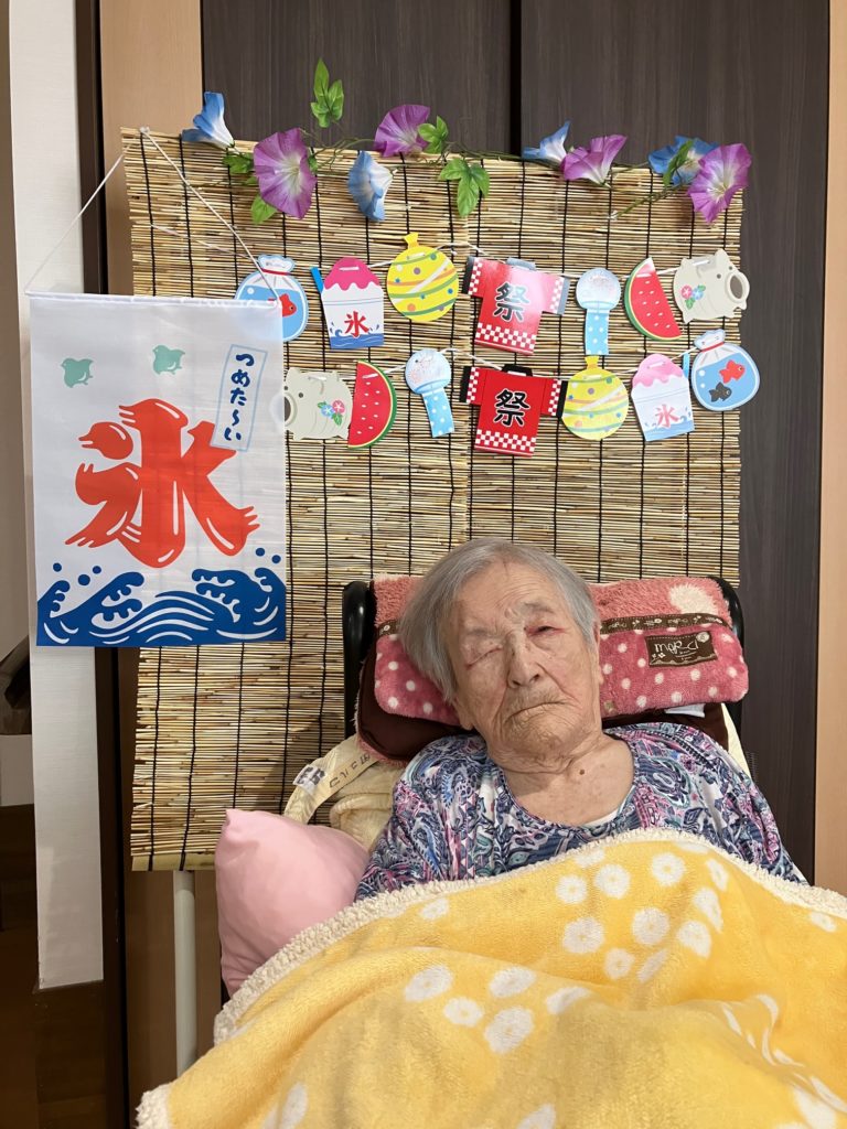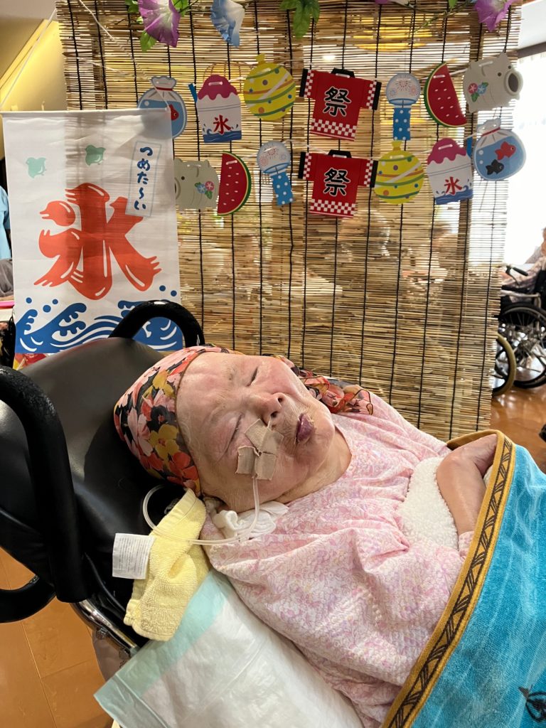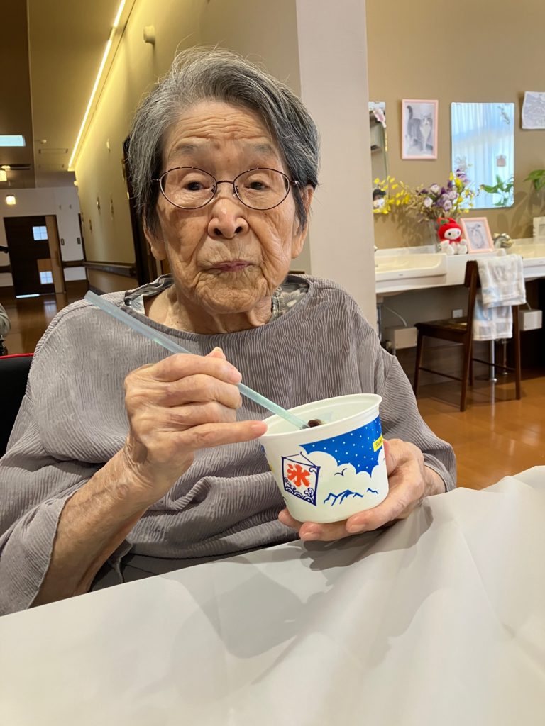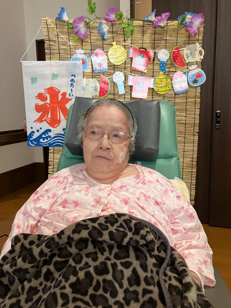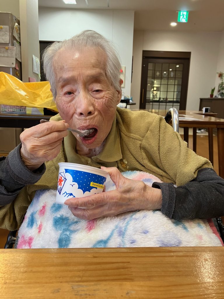 真夏になり、少しでも涼んで気分転換をしていただこうと思い、かき氷とムースの食レクを行いました!
