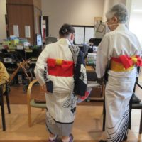 浴衣や法被(はっぴ)を着て頂き、いざ踊りへ。