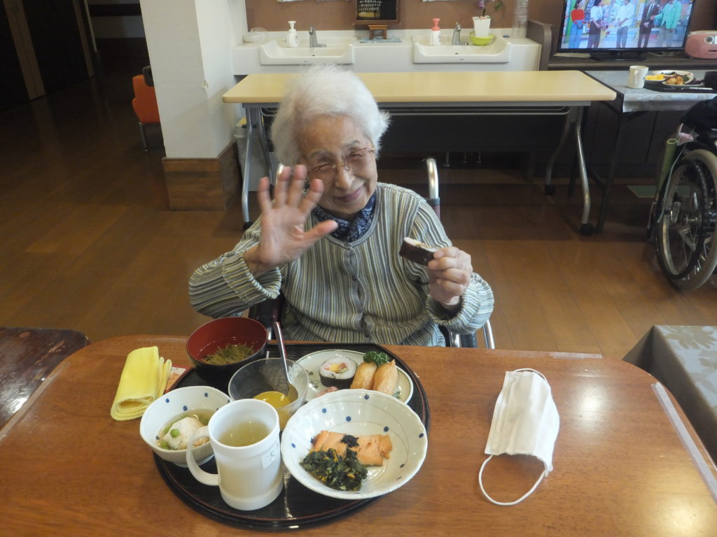 お昼は助六でした。皆様巻きずしがお好きです❤️「おいしかよー」