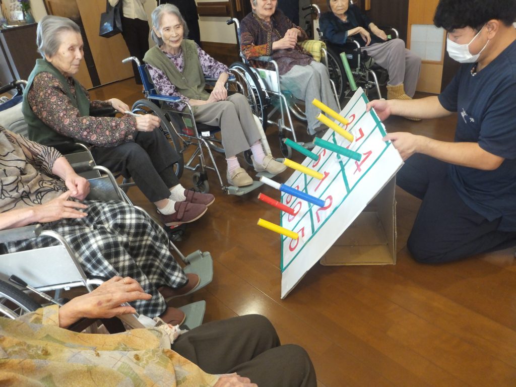 利用者の方が投げられる時に「がんばれー」と応援され盛り上がっていました。