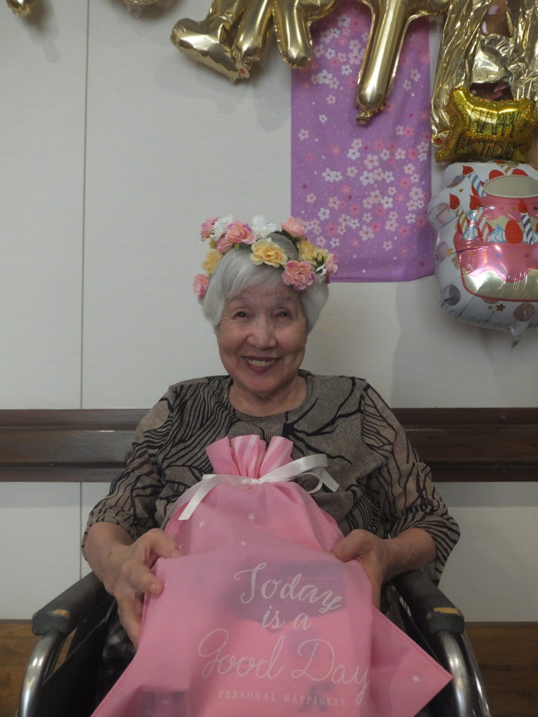 誕生日会のプレゼントを貰えて、とても喜ばれておられました。