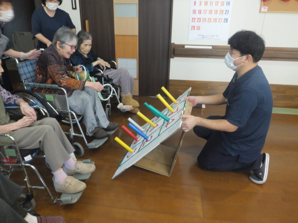 利用者の方が投げられる時に「がんばれー」と応援され盛り上がっていました。