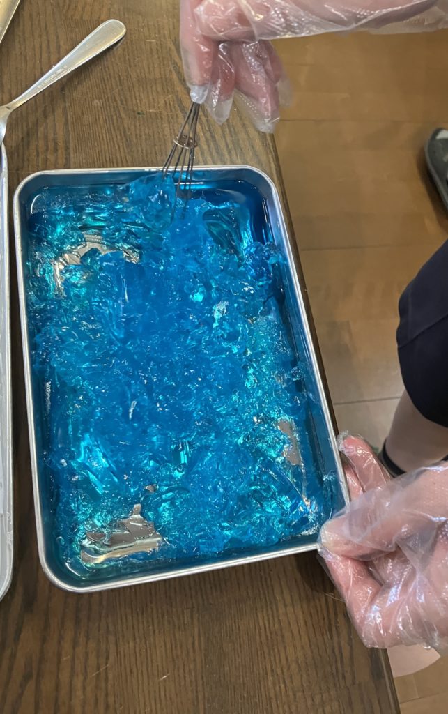 固まったゼリーをクラッシュする。