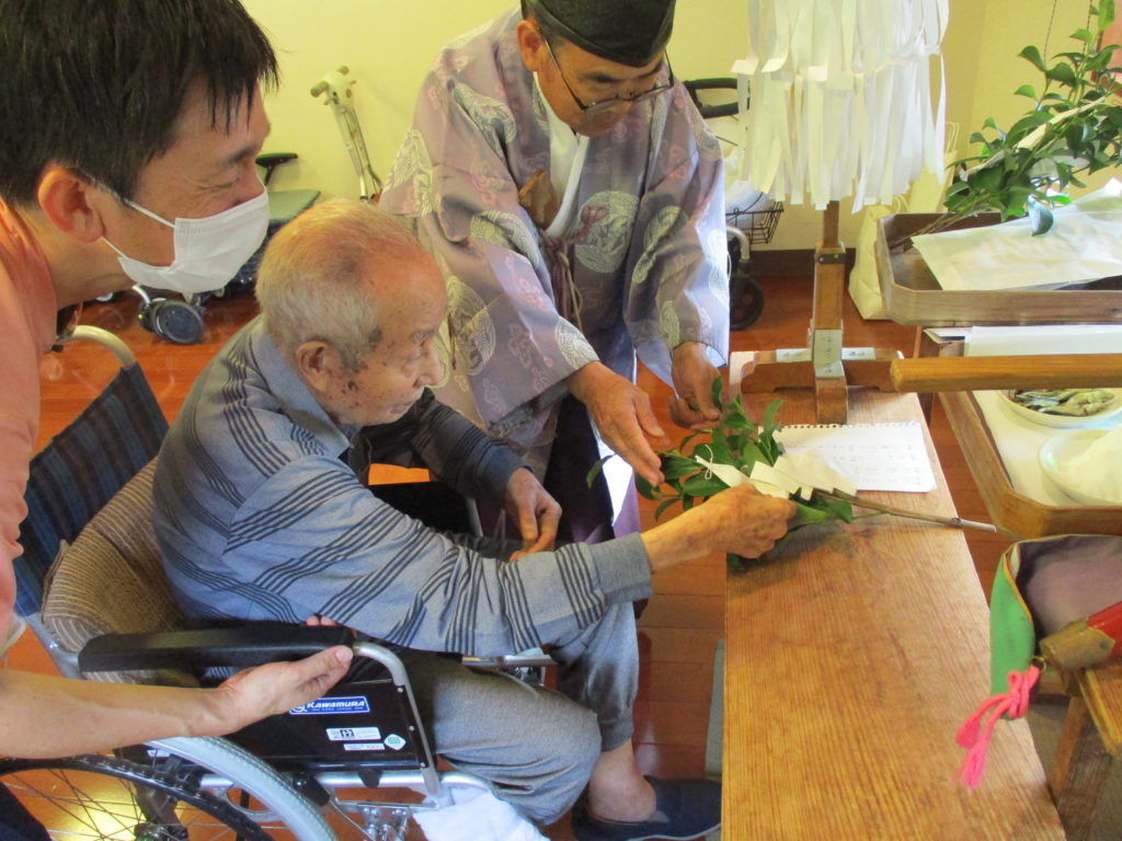 賀寿の節目を迎えられる利用者の方々へ、ご祈祷していただきました。