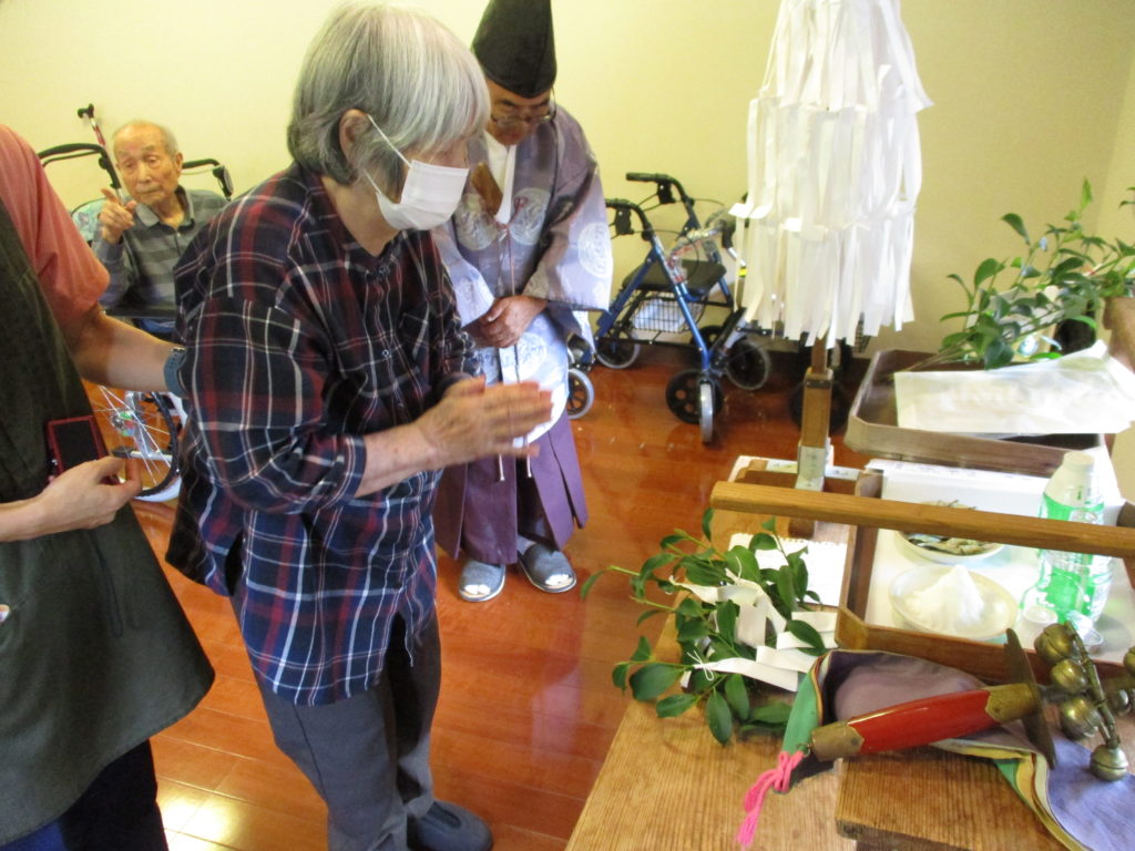 賀寿の節目を迎えられる利用者の方々へ、ご祈祷していただきました。