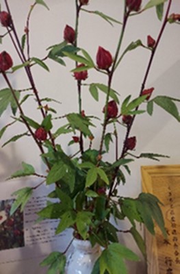 その「ローゼンハイビスカス」が実り、玄関の彩りとしました。